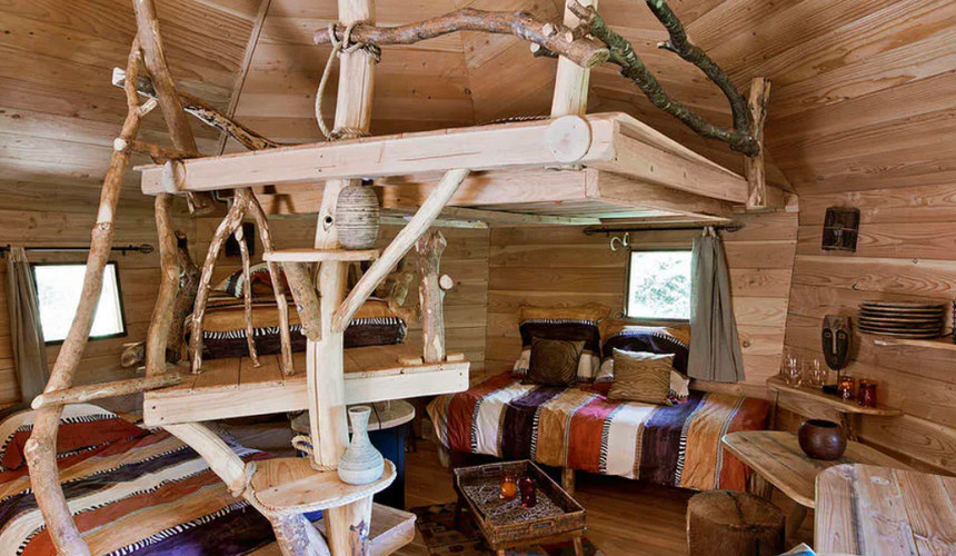 On peut remarquer que toutes les cabanes s'intègrent à la nature, pour se fondre au mieux dans l'environnement.